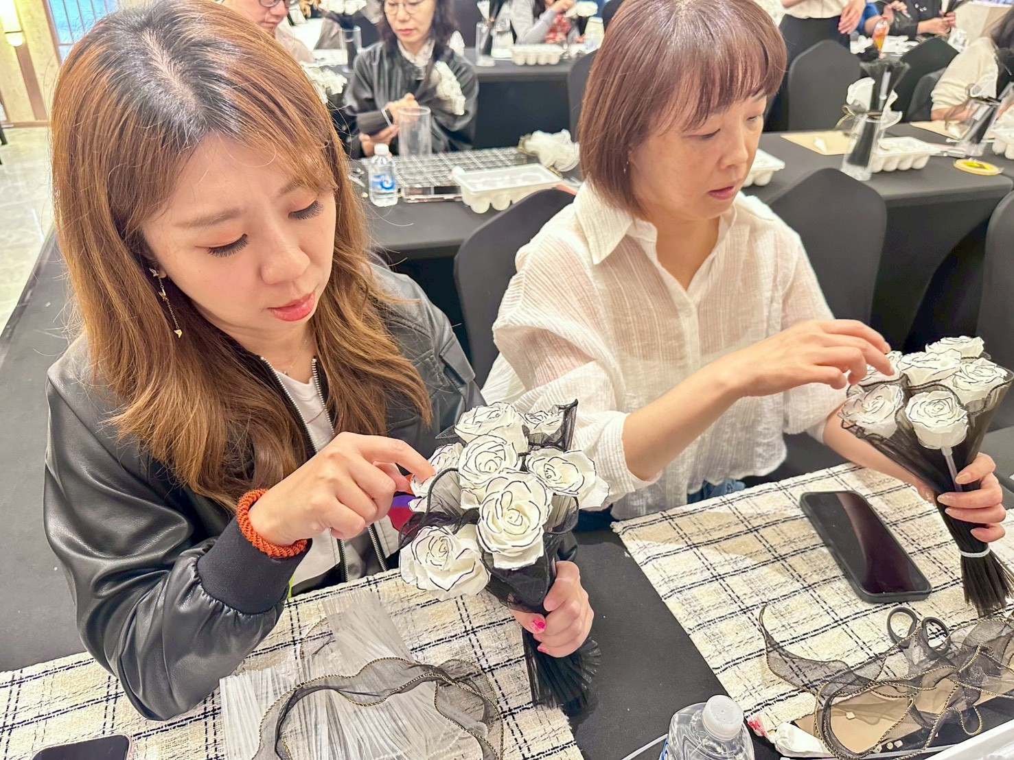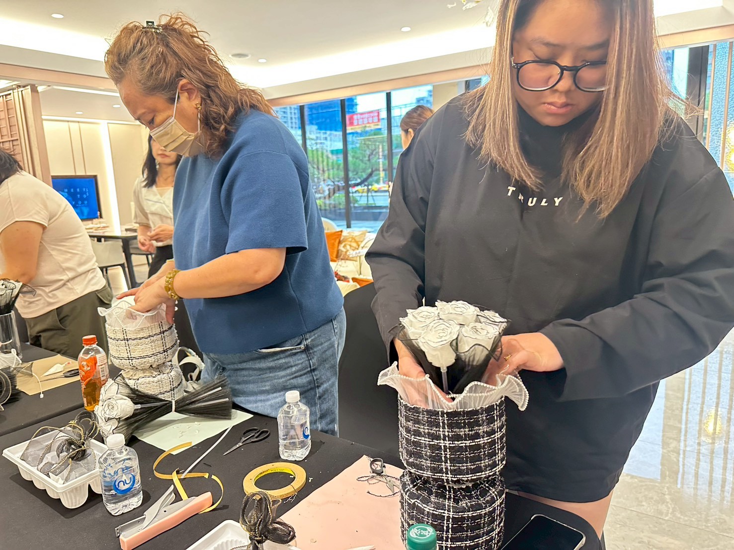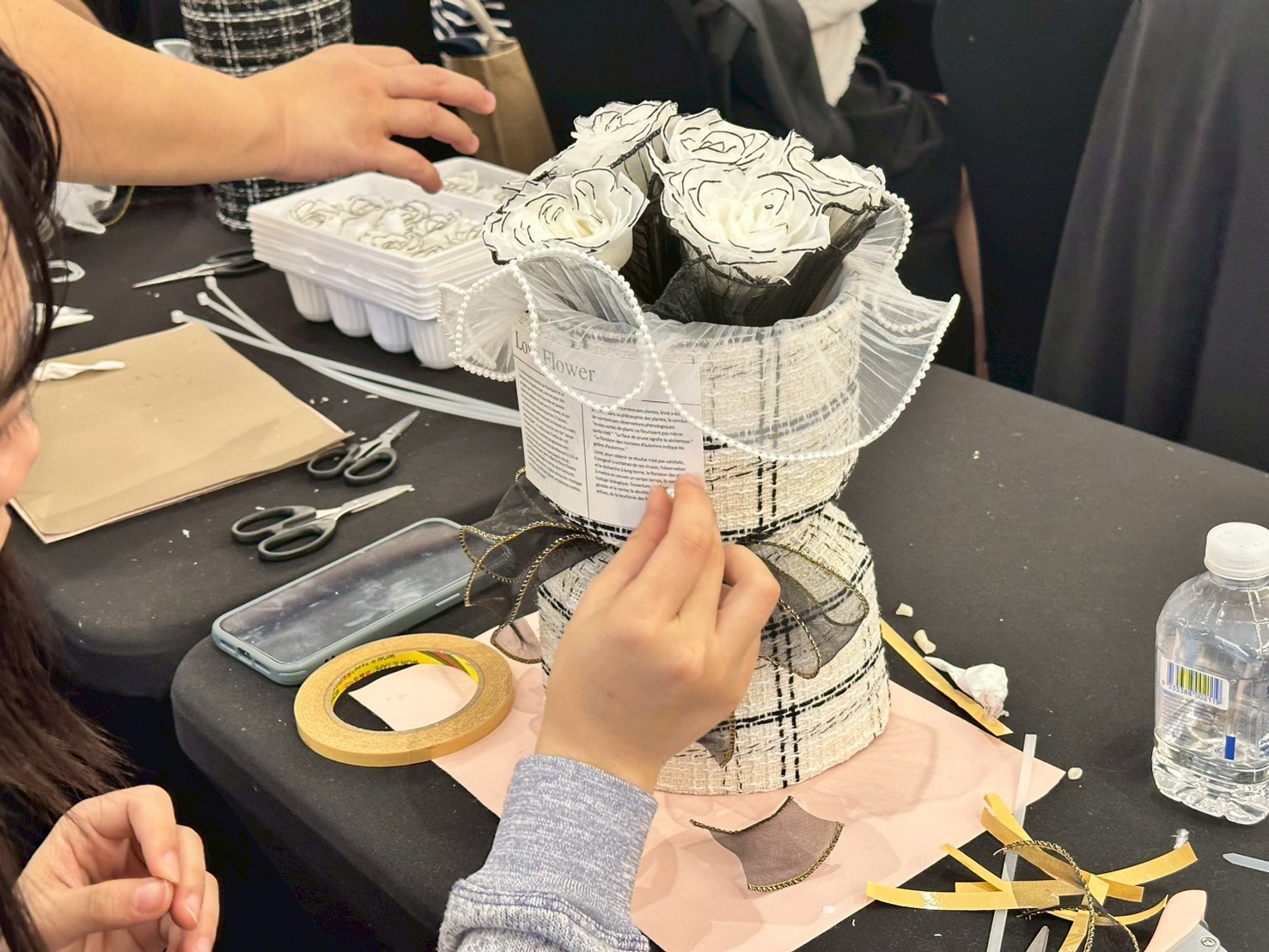 使用純白永生玫瑰,搭配小香風的布材、蕾絲、裝飾物 交織成一束極具質感的小香風玫瑰花束 米白色玫瑰滾上黑邊,香奈兒配色完全的經典 放置於家中,也是極為優雅的裝飾物