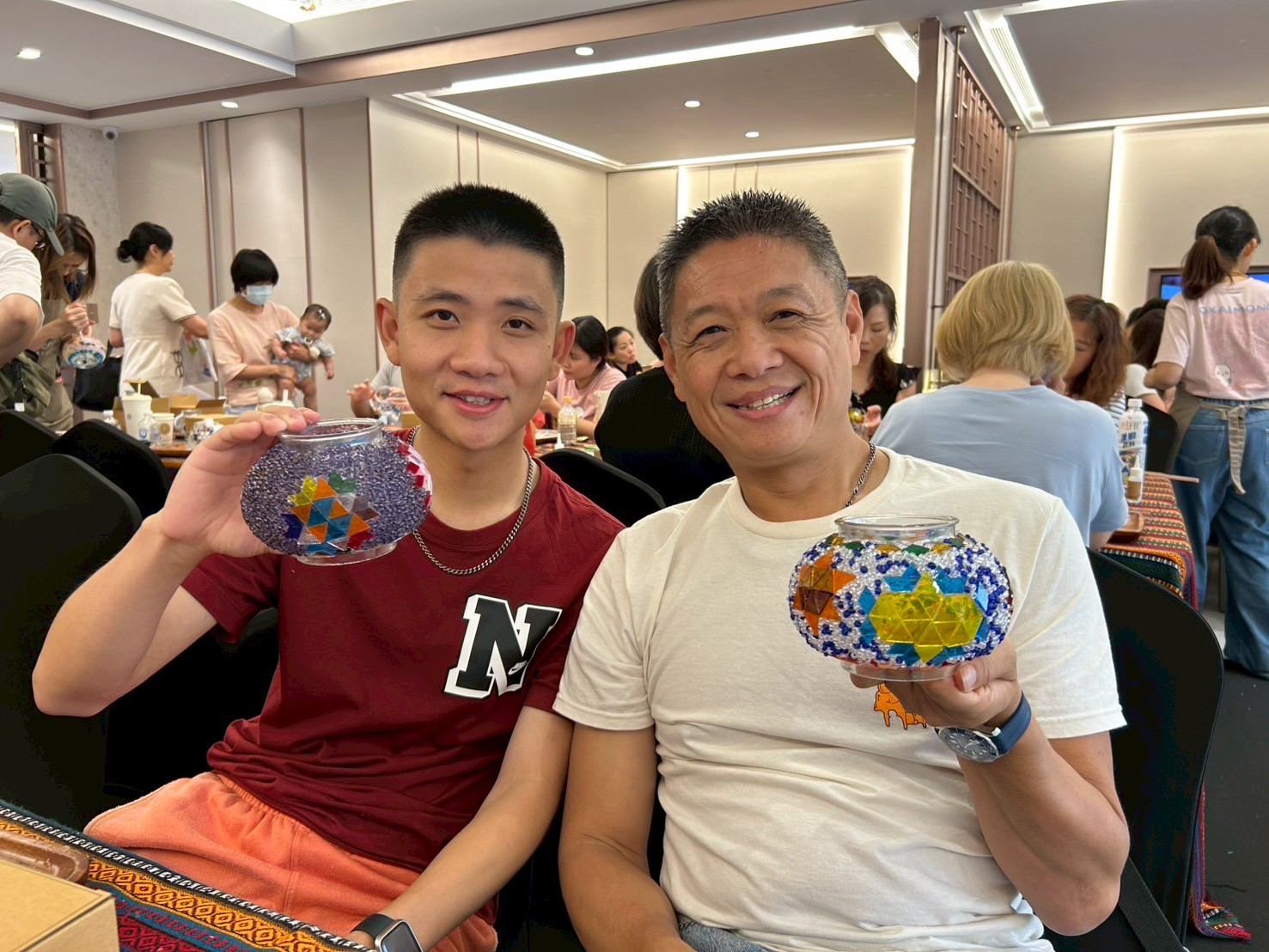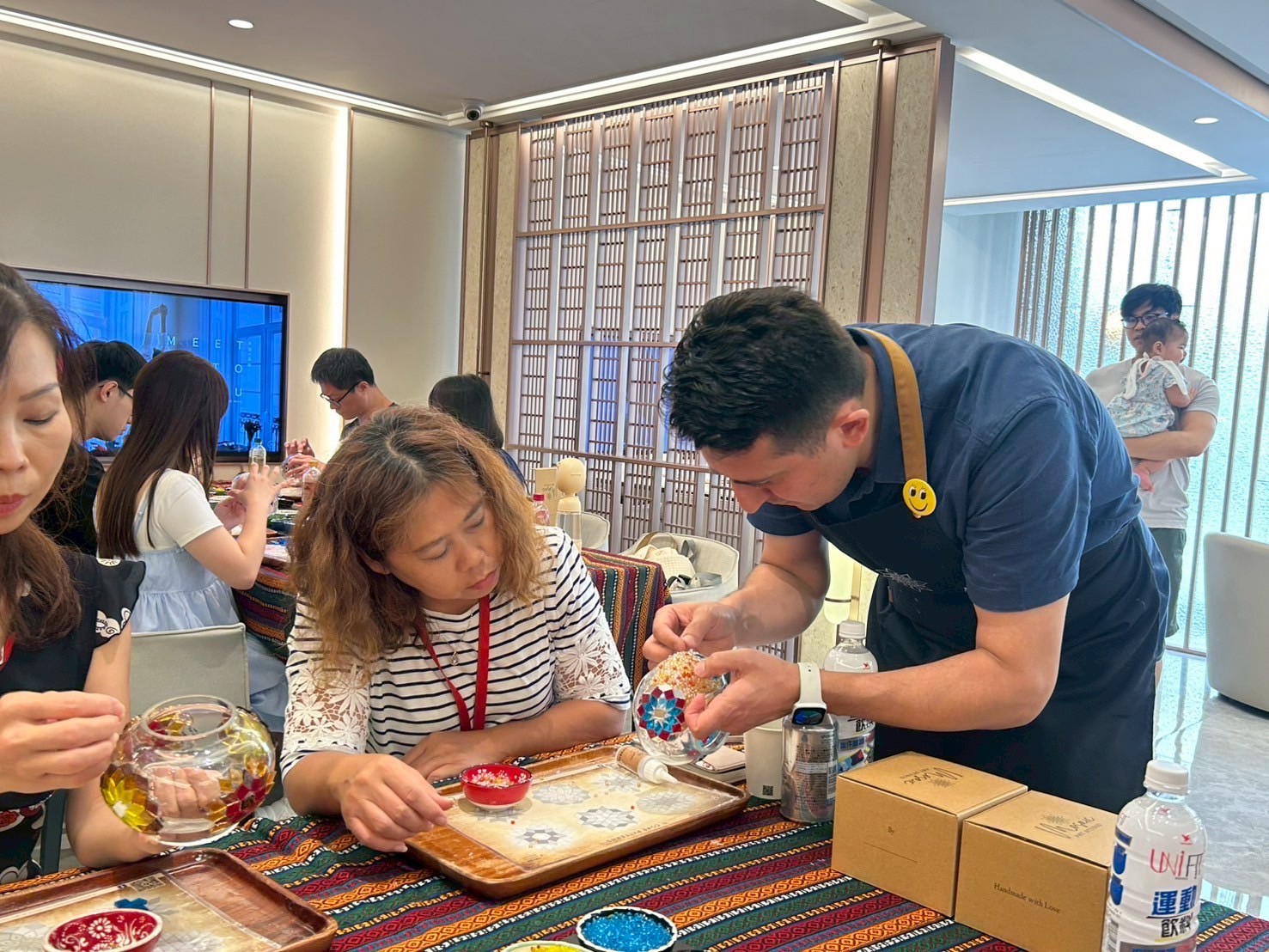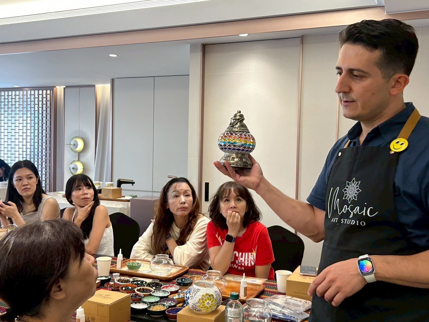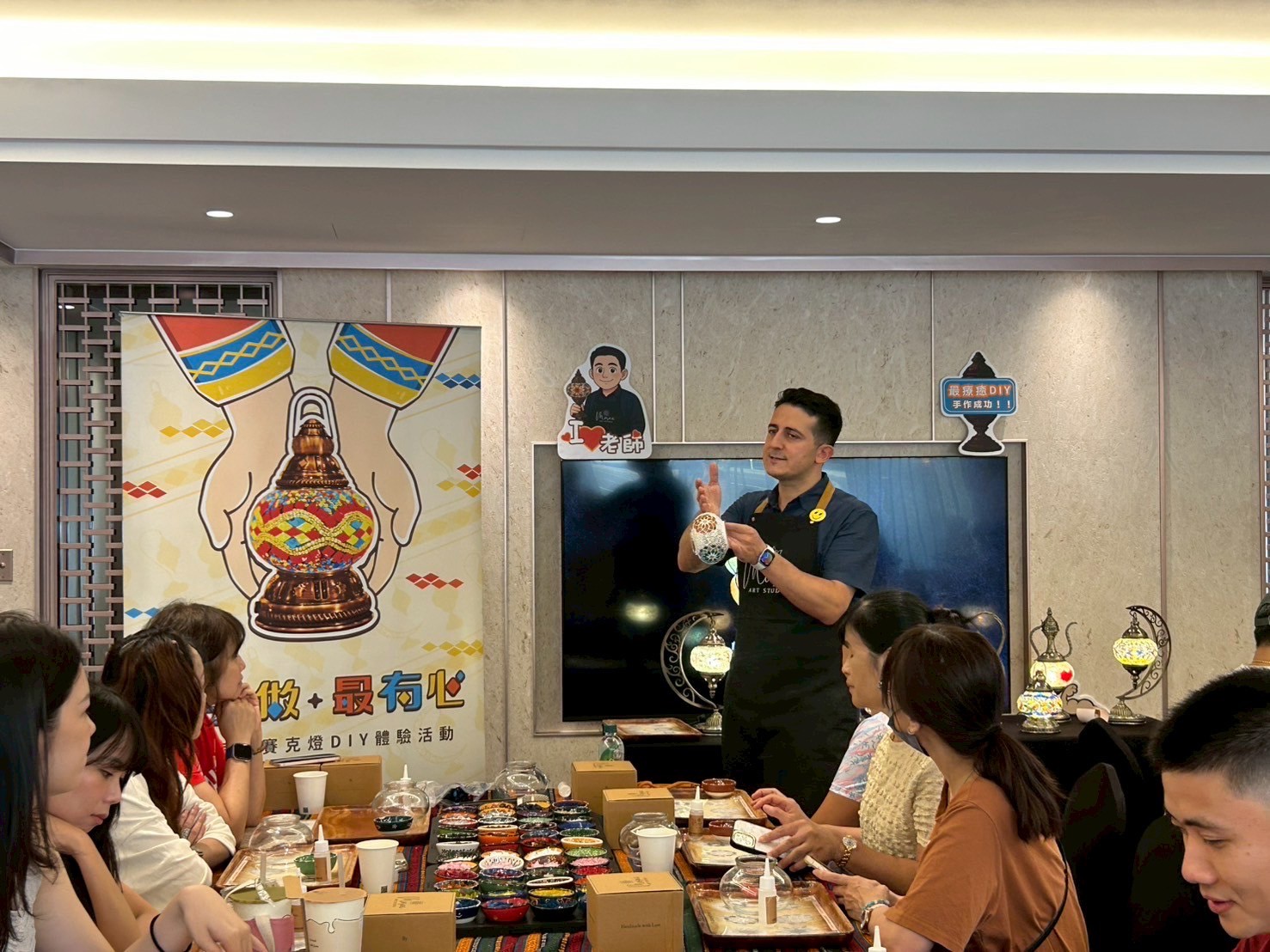 【土耳其馬賽克燈拼貼藝術-花絮】 不出國也可享受土耳其度假氛圍 華麗繽紛的琉璃及盛裝器皿均自土耳其進口 此次特別邀請土耳其外籍老師親自教學 一起製作極具異國風情的華麗風格燈飾